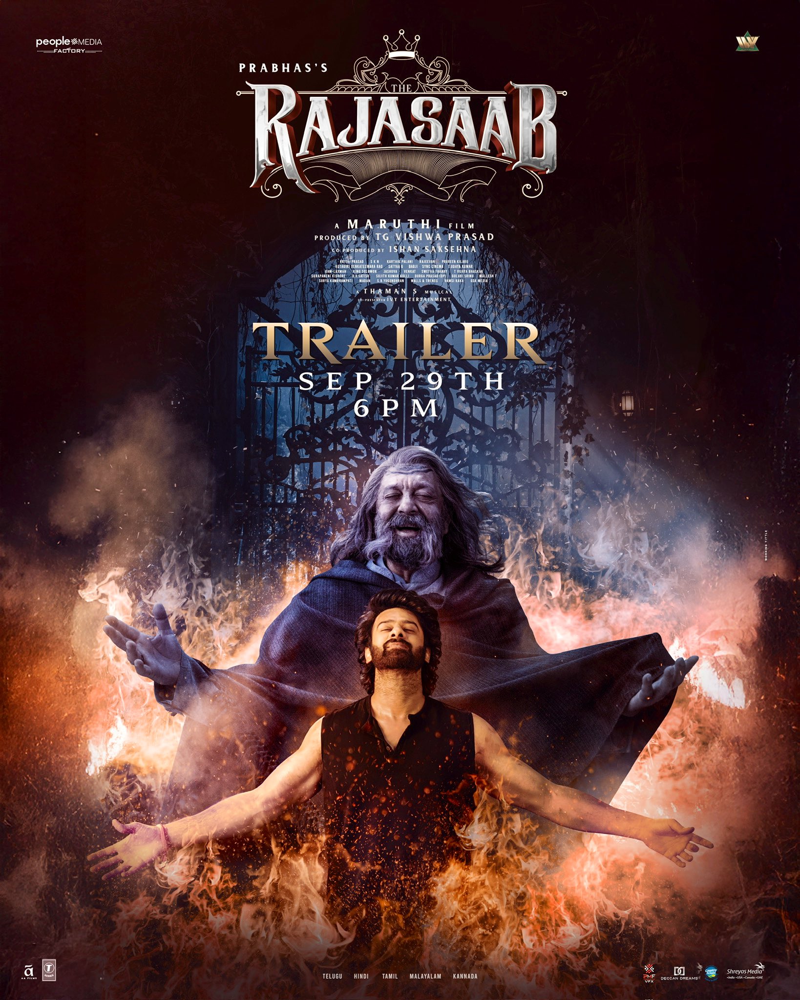 Backed by People Media Factory and produced by TG Vishwa Prasad, The RajaSaab is mounted on a massive scale and will release in five languages — Telugu, Hindi, Tamil, Kannada, and Malayalam. With music by Thaman S and a promise of breathtaking visuals, this Pan-India entertainer blends supernatural chills, quirky comedy, and Prabhas’ Rebel Star charisma like never before. The film also features Sanjay Dutt, Zareena Wahab, Nidhi Agerwal, Malavika Mohanan Boman Irani and Riddhi Kumar in pivotal roles. TG Vishwa Prasad and Krithi Prasad are bankrolling this biggie under People Media Factory.